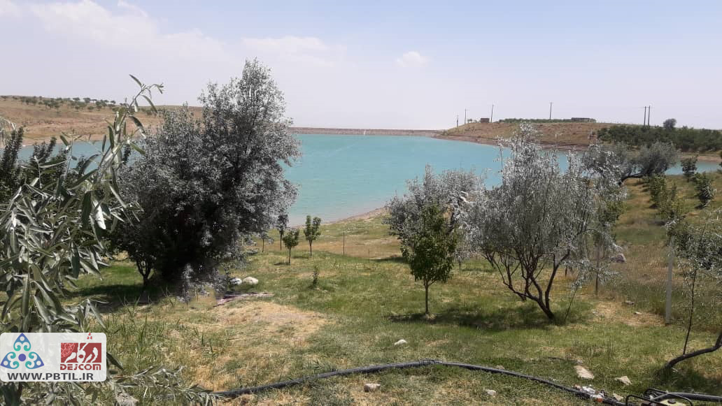 منطقه درختان بادام و آلبالو کاشته شده در دره وتپه به وسعت۱۸۰ هکتار با اب این سد