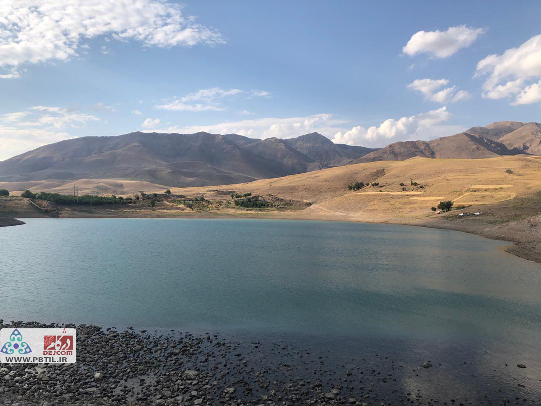 دریاچه ی این سد با آبهایی که از کوه میشو